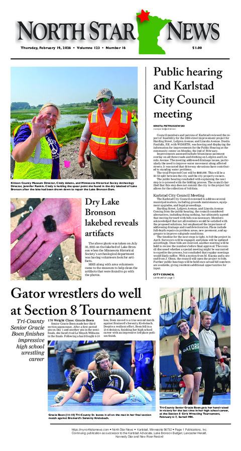 Public Hearing and Karlstad City Council Meeting Council members and patrons of Karlstad reviewed...